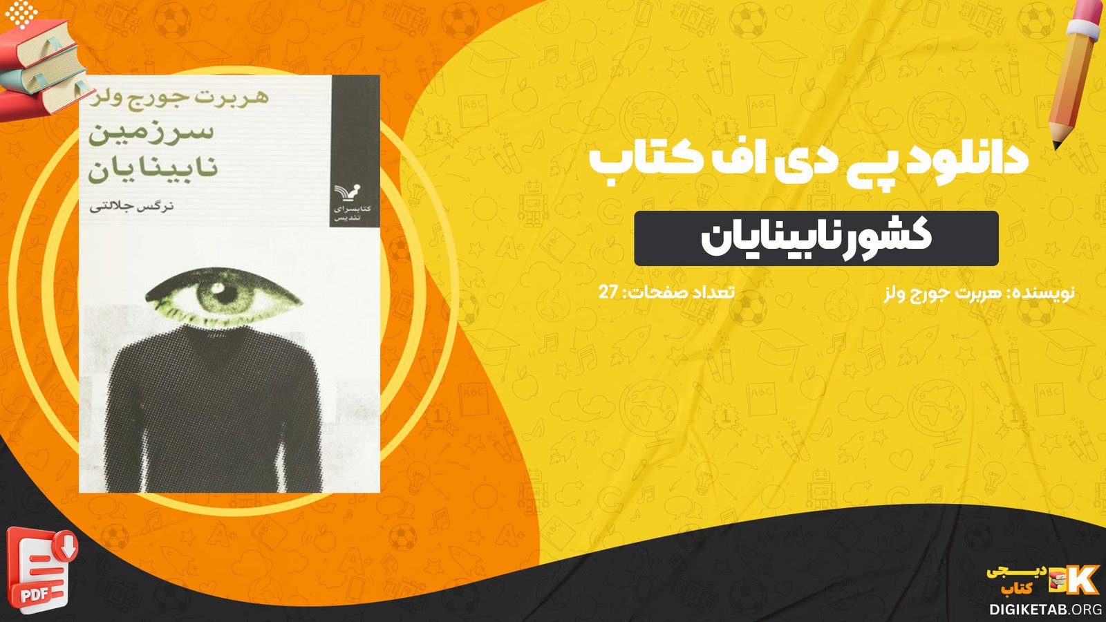 دیجی کتاب دانلود کتاب کشور نابینایان هربرت جورج ولز PDF را برای شما عزیزان آماده کرده .کتاب “کشور نابینایان” نوشته هربرت جورج ولز، یکی از آثار کلاسیک و مشهور این نویسنده انگلیسی است. این داستان کوتاه، که برای اولین بار در سال ۱۹۰۴ منتشر شد، به بررسی مفاهیم جامعه، ناتوانی و مفهوم بینایی میپردازد.برای خرید و دانلود کتاب های بیشتر همراه دیجی کتاب باشید.