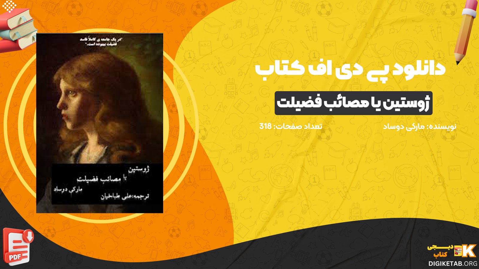 دیجی کتاب دانلود کتاب ژوستین یا مصائب فضیلت مارکی دوساد PDF را برای شما عزیزان آماده کرده است. مارکی دو ساد در طول دو قرن اخیر با برچسب‌هایی مانند هرزه‌نگار دیوانه، بی‌رحم، خشن، منحرف جنسی، متجاوز و قاتل شناخته شده است. این‌ها تنها برخی از برچسب‌های خنده‌داری هستند که به او نسبت داده شده‌اند. در مقابل، سوررئالیست‌های فرانسوی در اوایل قرن بیستم، مارکی دو ساد را به عنوان «مارکی الهی» و «رسول آزادی» در زمره قدیسین قرار دادند. با این حال، ساد واقعی بسیار پیچیده‌تر از این برچسب‌های ساده‌انگارانه است؛ برچسب‌هایی که همگی از افسانه‌ها ناشی شده‌اند. برای خرید و دانلود کتاب های بیشتر همراه دیجی کتاب باشید.