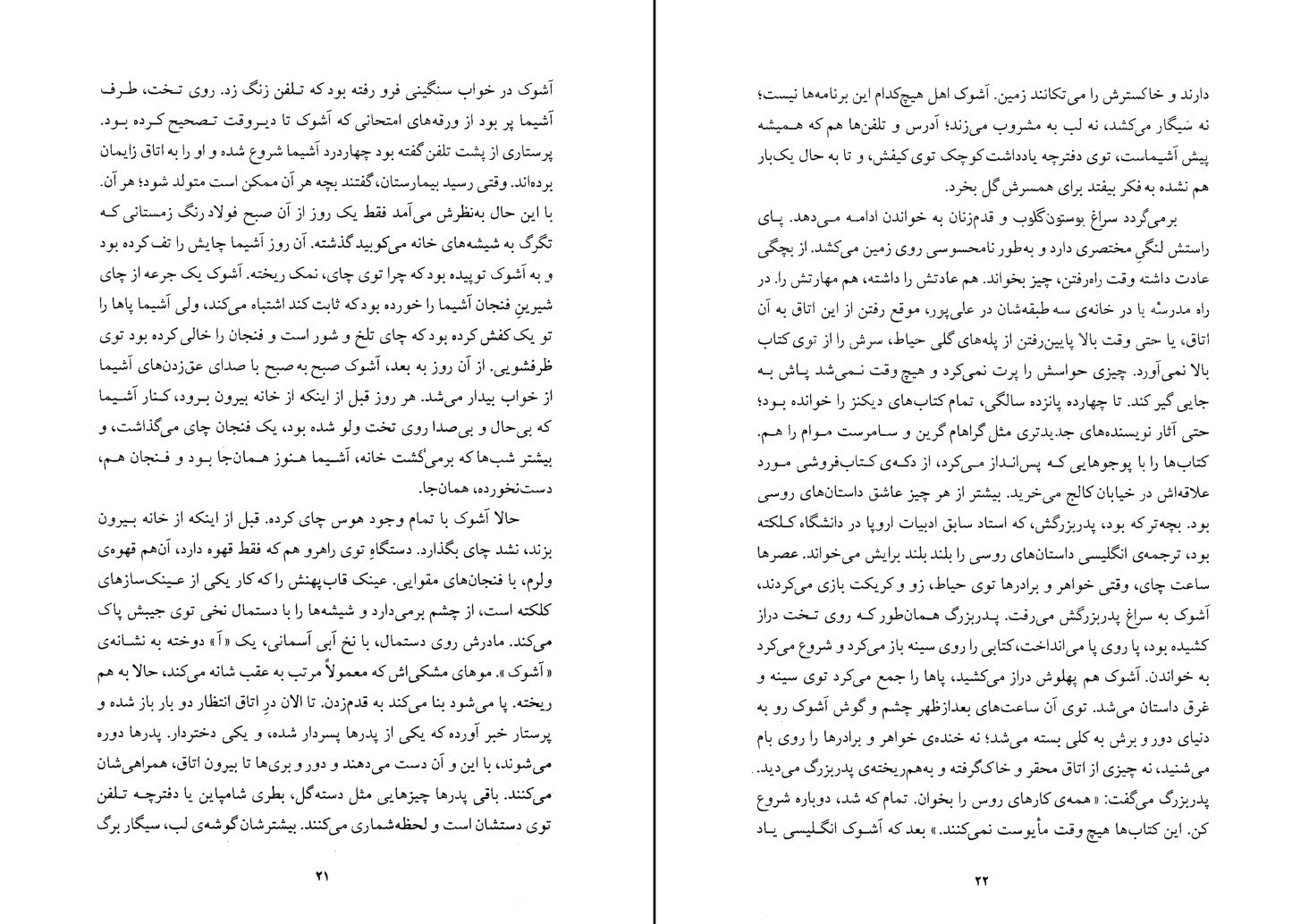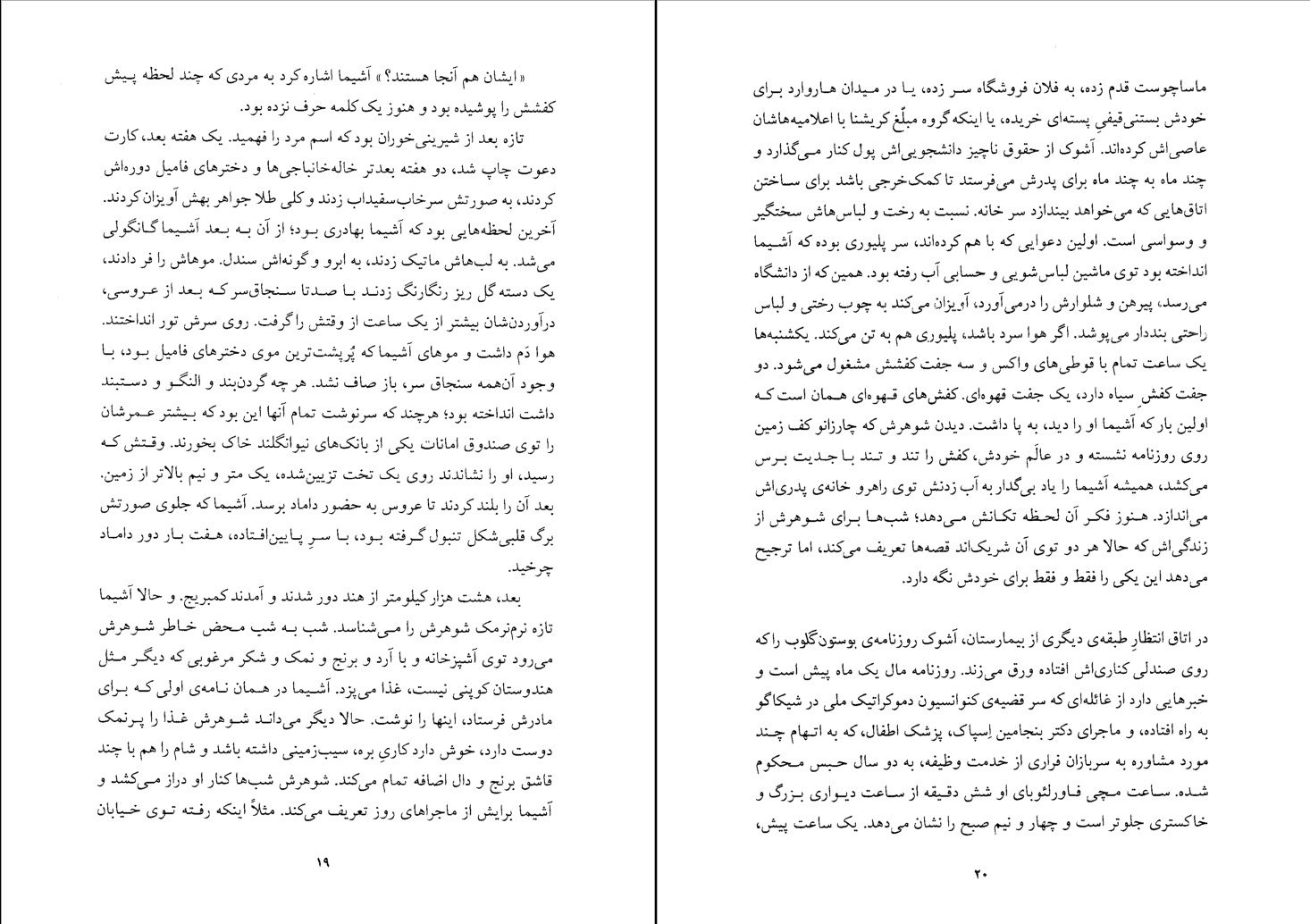 به آشیما می‌گوید چون حاملگی اولش است، این مرحله ممکن است تا بیست و چهار ساعت، بلکه بیشتر طول بکشد. آشیما چشم می‌گرداند آشوک را ببیند، ولی آشوک پشت پرده‌ای است که دکتر دور تخت کشیده. آشوک بلندبلند می‌گوید: «برمی‌گردم پیشت.» بعد صدای یکی از پرستارها می‌آید: «آقای گانگولی اصلا دلتان شور نزند. خانم شما حالاحالاها کار دارد. ما خودمان هواش را داریم.» حالا دیگر آشیما تنهاست. پردهٔ دور تخت، او را از سه زن دیگر توی اتاق جدا کرده. کم‌کم از لابه‌لای حرف‌هاشان اسمشان را می‌فهمد. یکی بِوِرلی است. یکی لوییس، سمت چپی هم کارول. آشیما می‌شنود که یکی از آنها یکهو هوار می‌کشد: «وای! مرده‌شورش را ببرد. جانم دارد بالا می‌آید!» بعد صدای مردی می‌آید: «عزیزم، دوستت دارم. واقعآ دوستت دارم.» آشیما این جمله را هیچ وقت از شوهر خودش نشنیده. توقعش را هم نداشته. آنها اصولا این‌جوری نیستند. اولین بار است که بین چند تا غریبه تنها افتاده. همیشه یا در یک اتاق پیش پدر و مادرش خوابیده یا آشوک پهلوش بوده. پیش خودش می‌گوید کاش پرده‌ها را کنار می‌زدند تا می‌شد با این زن‌های امریکایی حرف بزنم، بلکه یکی از آنها قبلا بچه زاییده باشد بتواند بگوید باید منتظر چی باشم. ولی خیلی وقت است دستش آمده امریکایی‌ها با وجودی که جلوی چشمِ این وآن مدام قربان‌صدقهٔ هم می‌روند و زن‌هاشان راه به راه بیکینی و مینی‌ژوپ می‌پوشند، و با وجودی که توی کوچه و خیابان بازو در بازوی هم می‌اندازند یا در پارک کمبریج توی بغل هم می‌خوابند، با همهٔ اینها اصولا تنهایی را ترجیح می‌دهند. دست می‌کشد روی شکمش که حالا عین بشکه سفت و قلنبه شده. فکری است که الان دست و پای بچه کجاست. این چند روز آخر، بچه دیگر از تک وتا افتاده و آشیما غیر از پرش‌های گاه و بیگاه روی دنده‌هاش، مشت و لگد و فشاری حس نکرده. از خودش می‌پرسد یعنی من تنها هندی این بیمارستان‌ام. ولی موقعی که بچه توی شکمش می‌جنبد، می‌بیند که نه، تنها نیست. پیش خودش فکر می‌کند چقدر عجیب غریب است که بچه بناست جایی به دنیا بیاید که بیشتر مردم در آنجا درد می‌کشند یا جان می‌دهند. کاشی‌های شیری کف اتاق، قاب‌های شیری سقف و ملافه‌های سفیدی که سفت روی تختش کشیده شده، چیزی ندارند که به آشیما قوت قلب بدهند. یادش می‌آید که در هند، زن حامله برای وضع حمل می‌رود خانهٔ پدر و مادرش؛ هم از شوهر و قوم شوهر دور می‌شود، هم از تمام گرفتاری‌های خانه. انگار تا چند وقت بعد از تولد بچه، مادر هم به دوران بچگی‌اش برمی‌گردد. باز دردش می‌گیرد؛ سخت‌تر از دفعهٔ قبل. جیغ می‌کشد. سرش را فشار می‌دهد به بالش و انگشت‌هاش نردهٔ سرد تخت را محکم می‌چسبد. ولی انگار کسی صداش را نشنیده؛ هیچ پرستاری دوان دوان به سراغش نمی‌آید. بهش گفته‌اند ببیند هر دردش چقدر طول می‌کشد. به ساعتش نگاه می‌کند که دمِراهی پدر و مادرش است. وقتی توی فرودگاه دام‌دام داشتند برای آخرین بار با هم خداحافظی می‌کردند، وسط هیاهو و اشک و آه‌های بیست و شش هفت نفر از فامیل، پدر و مادرش بی‌آنکه خودش بفهمد ساعت را به مچش بسته بودند. اولین بار بود سوار هواپیما می‌شد. قوم و خویش‌ها از بالکن فرودگاه تماشاشان می‌کردند. هواپیما با صدایی گوشخراش بلند شده بود و از روی قسمت‌هایی از هندوستان رد شده بود که پای آشیما هیچ وقت به آنجا نرسیده بود. بعد هم به کلی از کشور خارج شده بود و لحظه به لحظه، دور و دورتر شده بود.