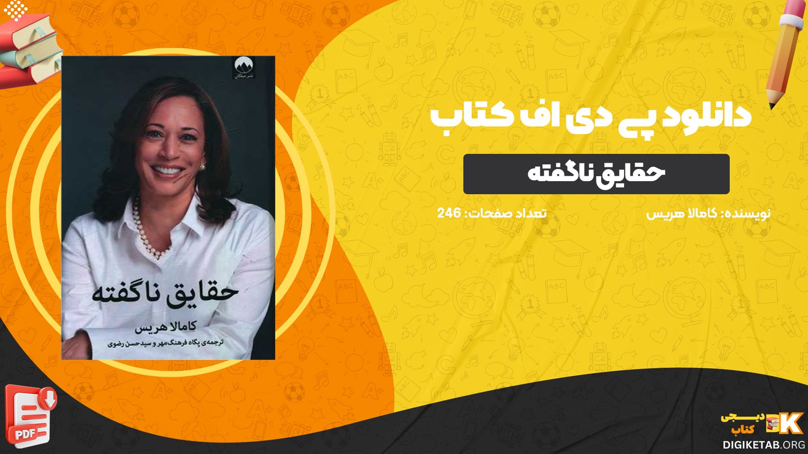 دیجی کتاب دانلود کتاب حقایق ناگفته کامالا هریس PDF را برای شما عزیزان آماده کرده .کتاب “حقایق ناگفته” درباره کاملا هریس به بررسی زندگی، کارنامه سیاسی و دستاوردهای این زن برجسته در زمینه حقوق و سیاست میپردازد. کاملا دِوی هریس در سال ۱۹۶۴ از پدری جامائیکایی و مادری هندی به دنیا آمد. والدین او در دوران دانشجویی و در جریان فعالیتهای حقوق مدنی با هم آشنا شدند.برای خرید و دانلود کتاب های بیشتر همراه دیجی کتاب باشید.